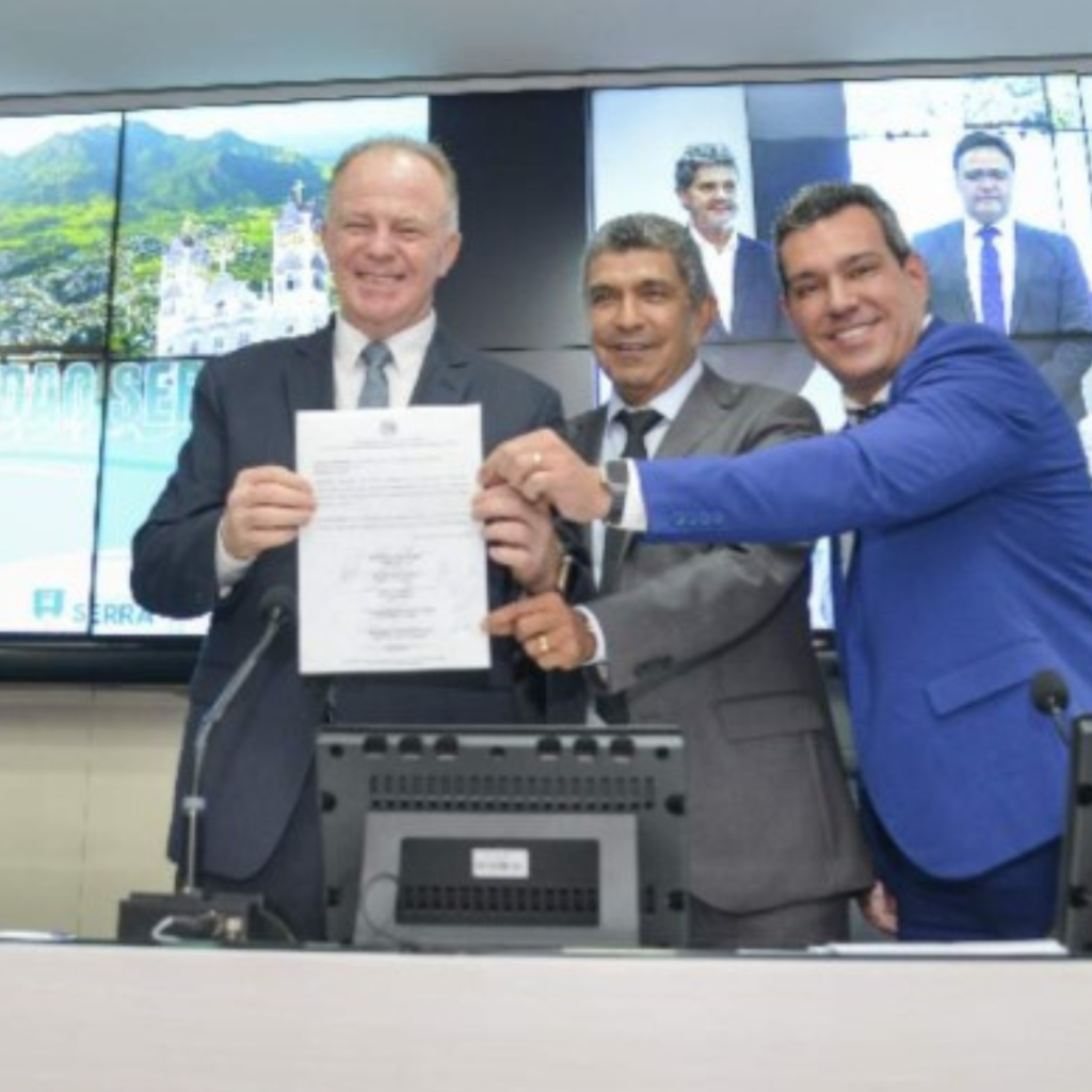 Na solenidade, realizada na Câmara Municipal da Serra, foi assinada a ordem de serviço da construção da Variante São Domingos.