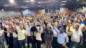 Diversas lideranças aproveitaram o encontro estadual do partido para assinar a filiação ao Podemos. Dr. Bruno Resende só deverá efetivar a filiação no período da chamada janela partidária, em março do ano que vem, observando a legislação eleitoral e a antecedência de seis meses em relação ao pleito de outubro de 2026.