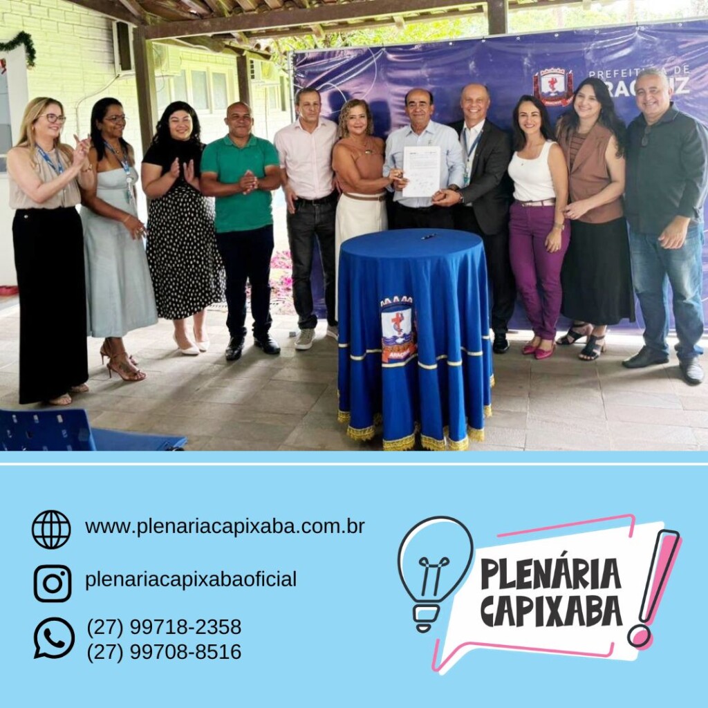 Aconteceu na manhã de terça-feira (23), em frente ao Gabinete da Prefeitura de Aracruz, uma solenidade de Assinatura do Contrato de Estruturação do Projeto de Concessão do Sistema de Serviços de Suporte à Educação Infantil. O evento contou com as presenças do prefeito Dr. Coutinho, dos secretários municipais de Educação (Semed), Jenilza Spinassé, de Planejamento (Sempla), Giuseppe Coutinho Silveira, de Gestão Estratégica (Seges), Jeesala Coutinho, dos vereadores Renato Pereira e Dequinha da Vila, além do superintendente da Caixa, Marcos Vinícius.