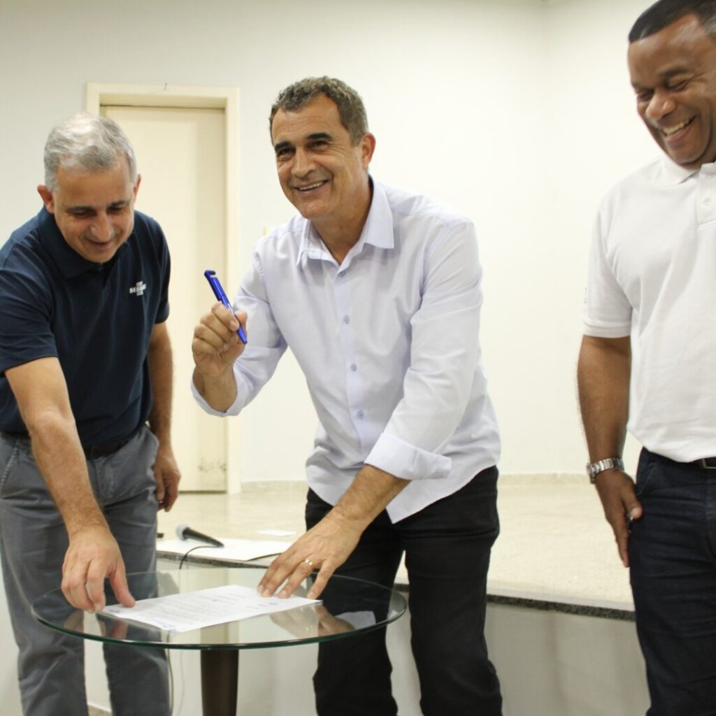 Prefeito Marcos Guerra assinou adesão ao programa do Sebrae que tem o objetivo de contribuir para o desenvolvimento do setor econômico e facilitar o empreendedorismo.