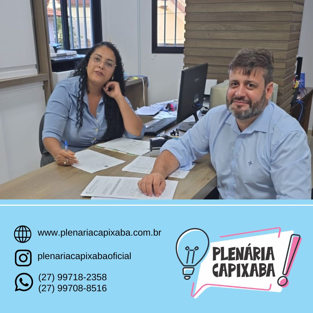 Por assessoria / Foto: Secretário municipal de Obras, Allan Dantas, e a escrevente, Simone Teixeira Apóstolo, em reunião no Cartório de Registro de Imóveis da comarca de João Neiva / Crédito: Divulgação